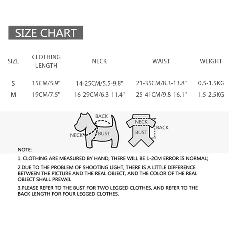 Size: S, M---length (without hat)---neck circumference---waist circumference---recommended weight