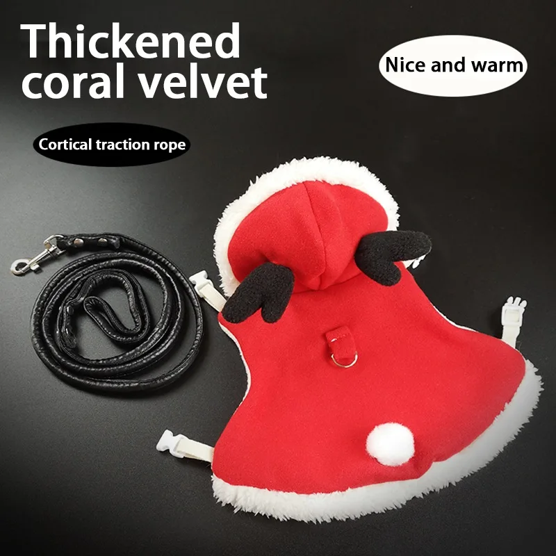 Christmas Small Animal Costume Coat Winter Warm Pet Rabbit Clothes Harness Leash Set For Ferret Bunny Hamster Small Pet Costume