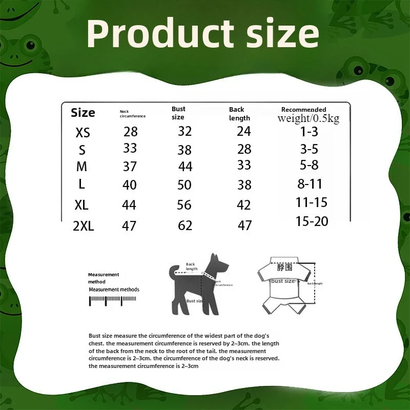 2XL - Neck Dimension:47cm, Chest Girth: 62cm, Back Length: 47cm for dogs about 7.5-10kg