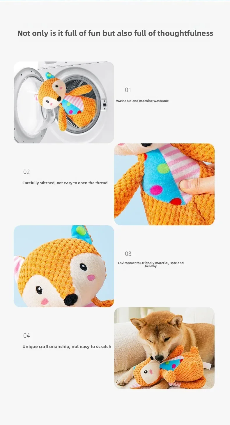Pet Dog Plush Toy Cute Fox Elephant Bite Resistant Interactive Squeaky Dog Chewing Toy Dog Teeth Cleaning Sounding Doll Chew Toy