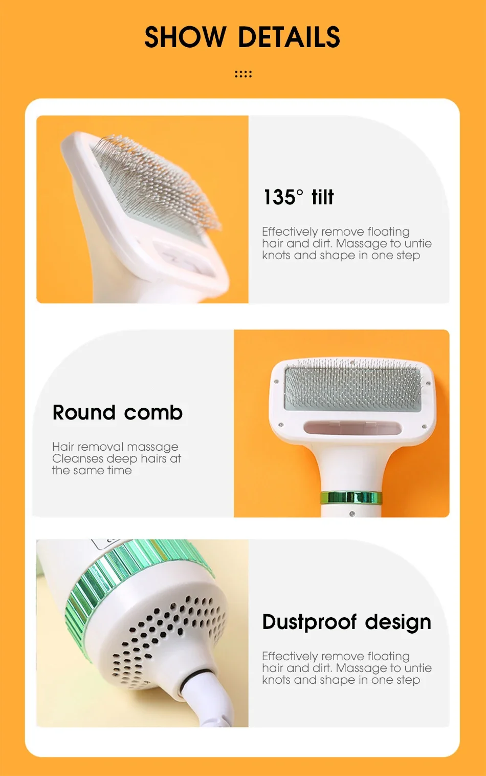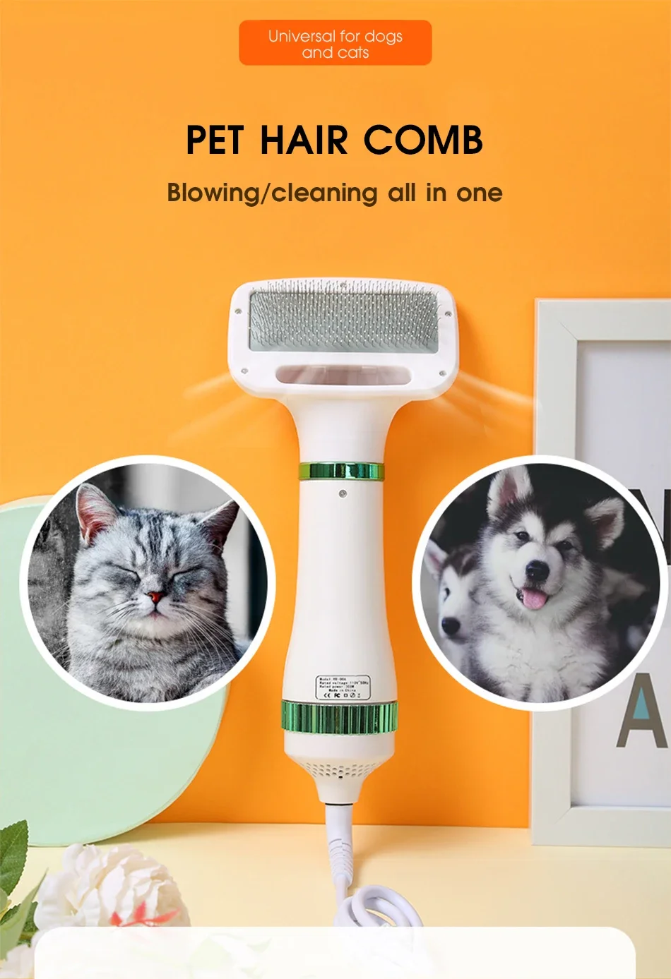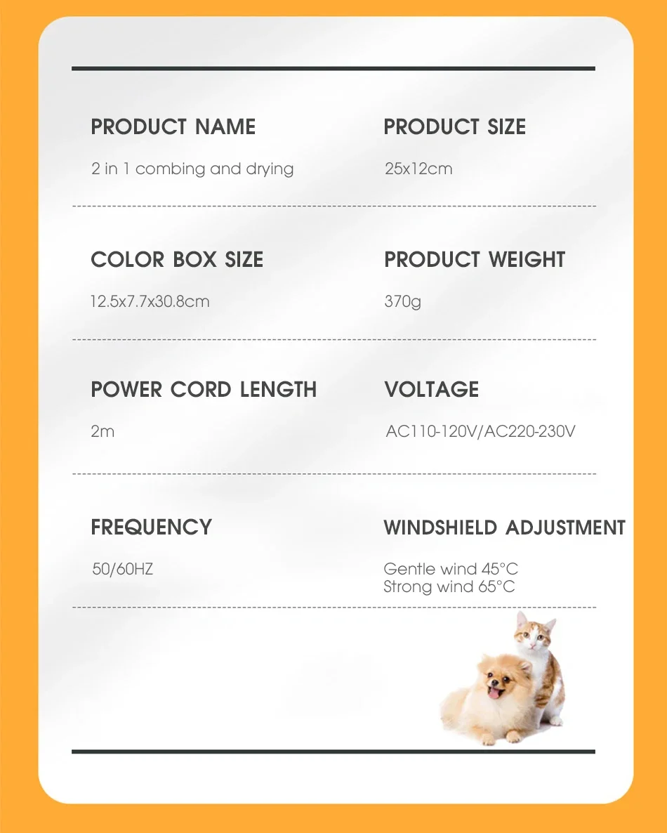 【2-in-1 function】This product ingenious combines hair dryer and pet comb. Drying and grooming of pets are performed at the same time.
