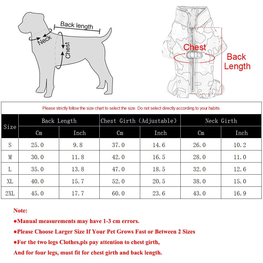 Please Choose Larger Size If Your Pet Grows Fast or Between 2 Sizes For the two legs Clothes,