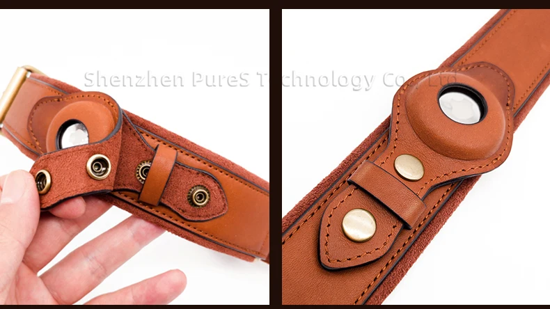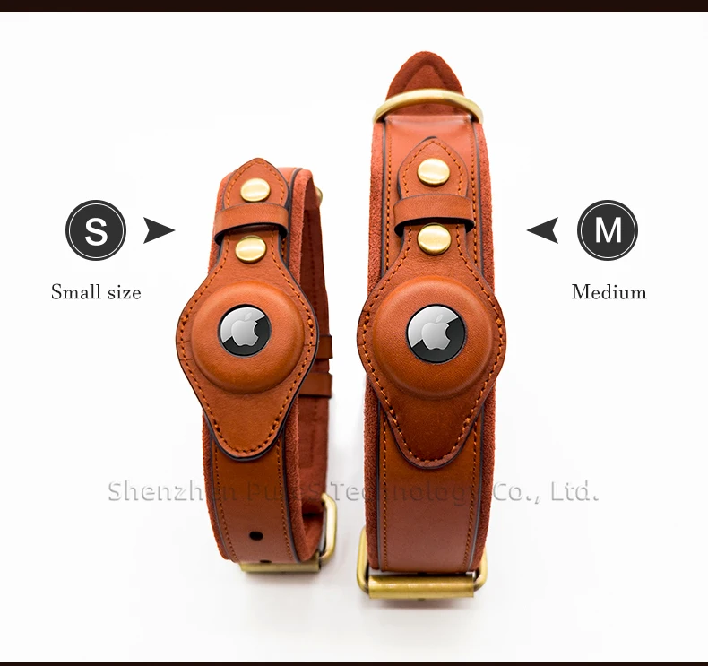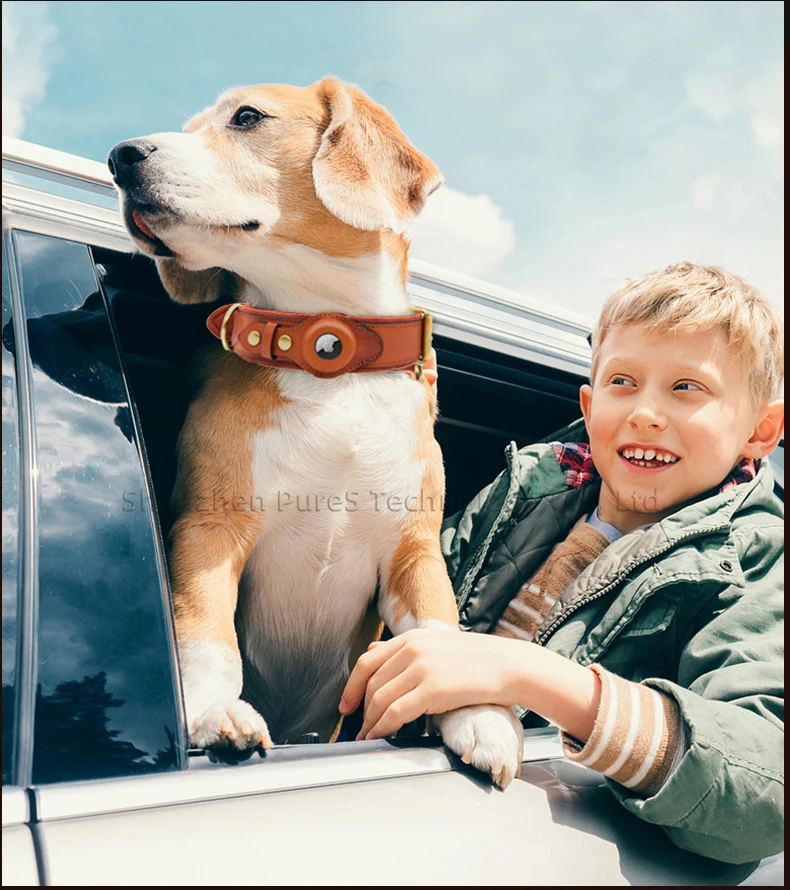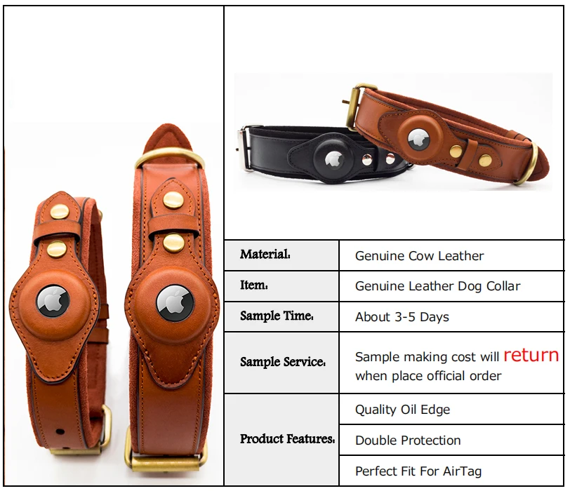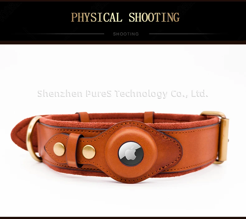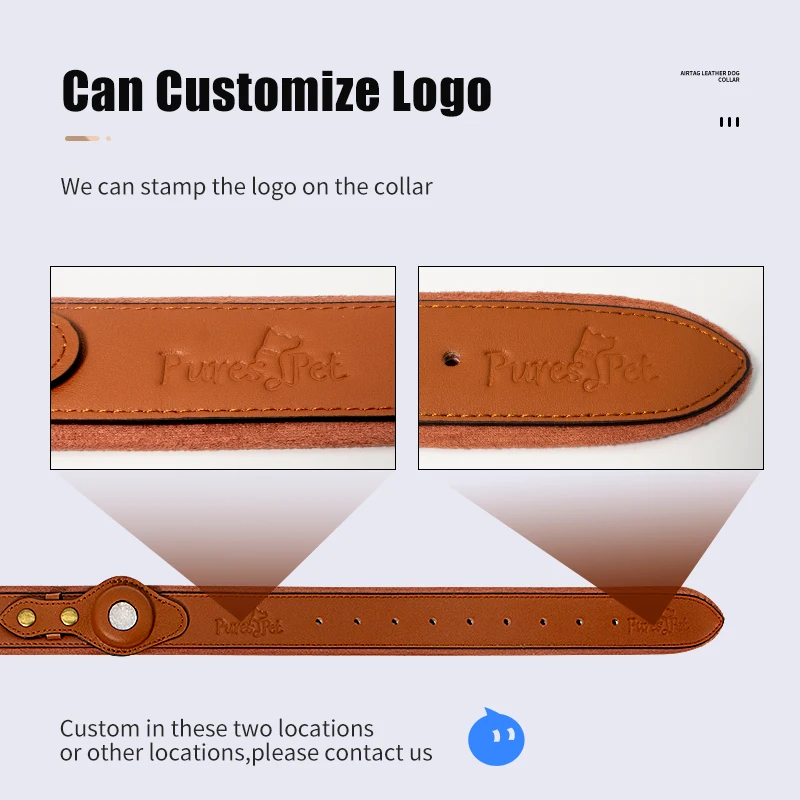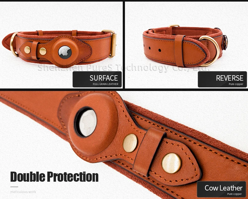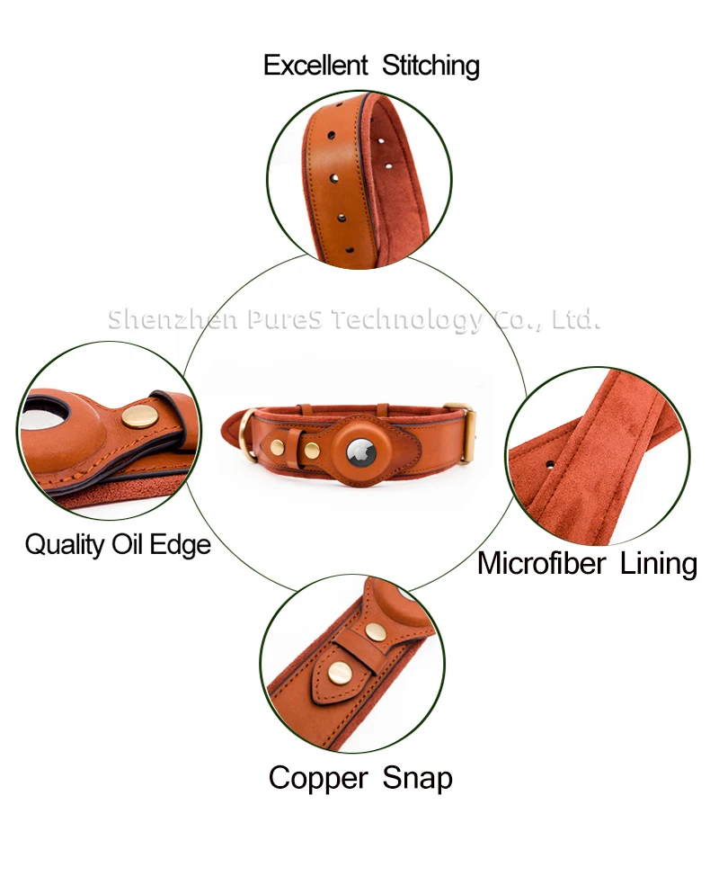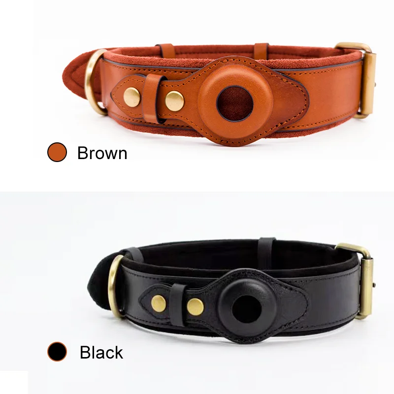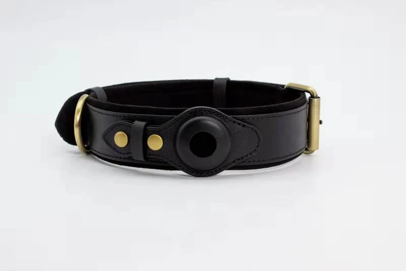 Customized Dog Collar Personalized Genuine Leather Dog Collar Medium Large Pet Airtag Dog Collar With Case Holder